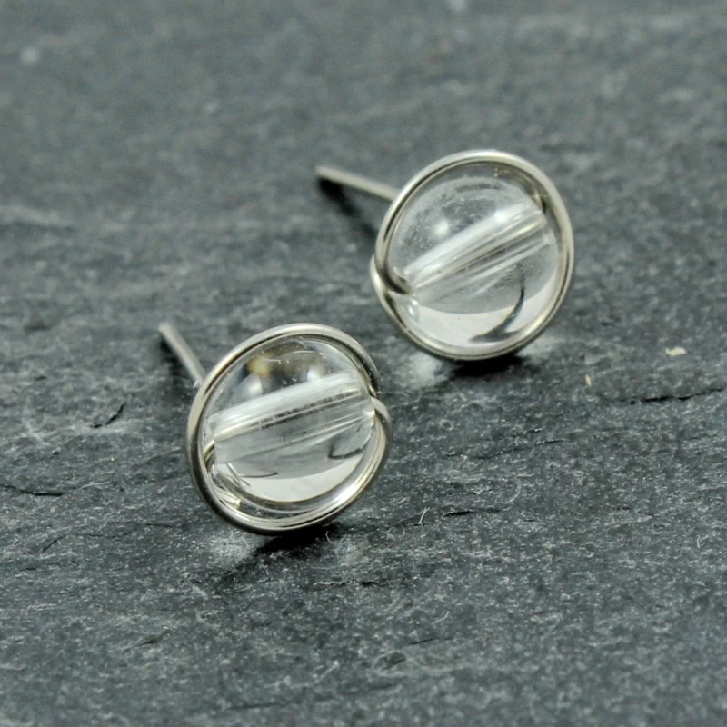 Peckové mini náušnice s průzračným křišťálem jsou vyrobené z osteodrátu (chirurgické oceli pro implantáty W.Nr. 1.4441). Dodávám se silikonovými zarážkami. Průměr minerálových kuliček je cca 6 mm. Foto ilustrační.