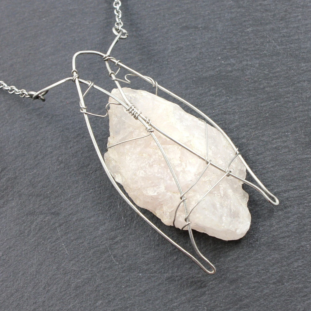 Originální náhrdelník s netopýrem Růženkou je vytvořen ze surového kusu růženínu a nerezového drátu. Netopýr odpočívá zavěšený na řetízku (též z chirurgické oceli 316L). Velikost přívěsku je cca 7 cm, délka řetízku cca 60 cm (na přání upravím).