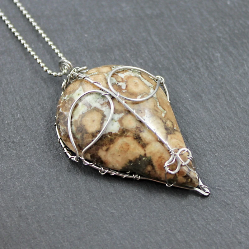 Přívěsek pro muže s ptačí hlavou je vytvořený z jedinečného kabošonu bludovitu a drátu z chirurgické oceli 316L. Velikost přívěsku je cca 5x3 cm, délka náhrdelníku cca 45 cm + 5,5cm adjusta.
