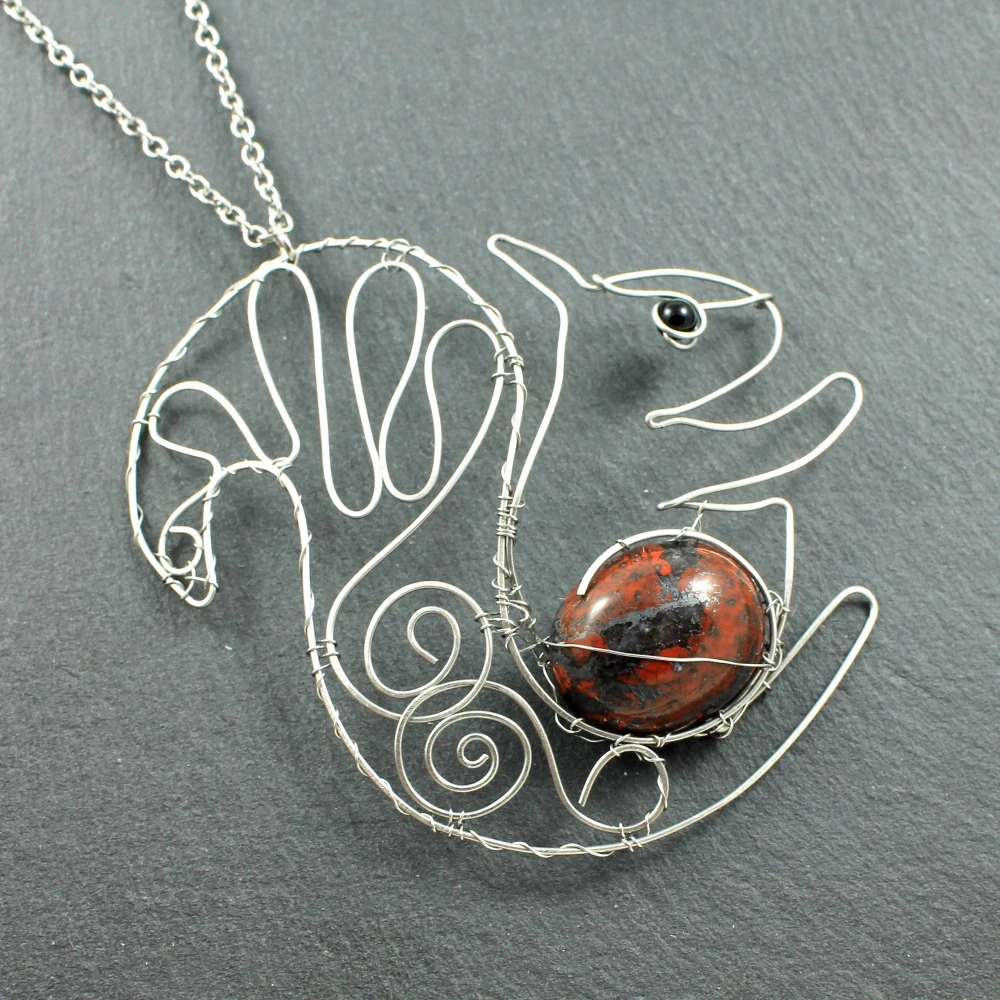 Originální přívěsek na krk veverka Věrka se zrodil z chirurgického nerezového drátu, železitého křemene a onyxu.. Veverka je roztomilý až roztomile drzý hlodavec, který – přestože je celé léto téměř neviditelný – nám zvládne očesat lísku od oříšků ještě před jejich úplným dozráním :-) Všechny kovové části jsou z chirurgické nerezové oceli 316L.